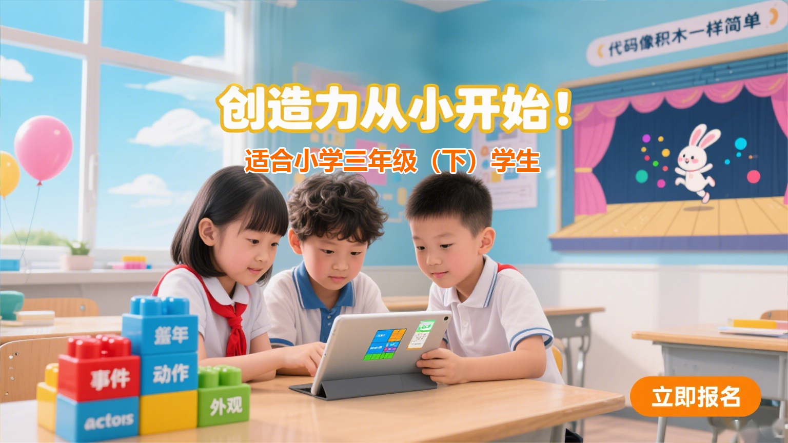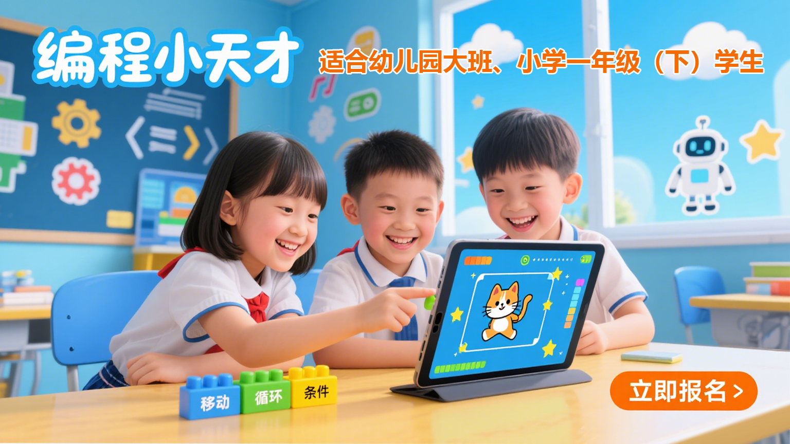 本课程专为启蒙阶段孩子设计,通过无压力的卡通图形化编程,像搭积木一样激发孩子的逻辑思维萌芽,在亲子协作中收获成就感。配合精选亲子绘本阅读,旨在培养孩子的阅读兴趣与良好习惯,更重要的是为您创造一段高质量的家庭陪伴时光。这不仅是学习,更是爱与智慧的共同成长。